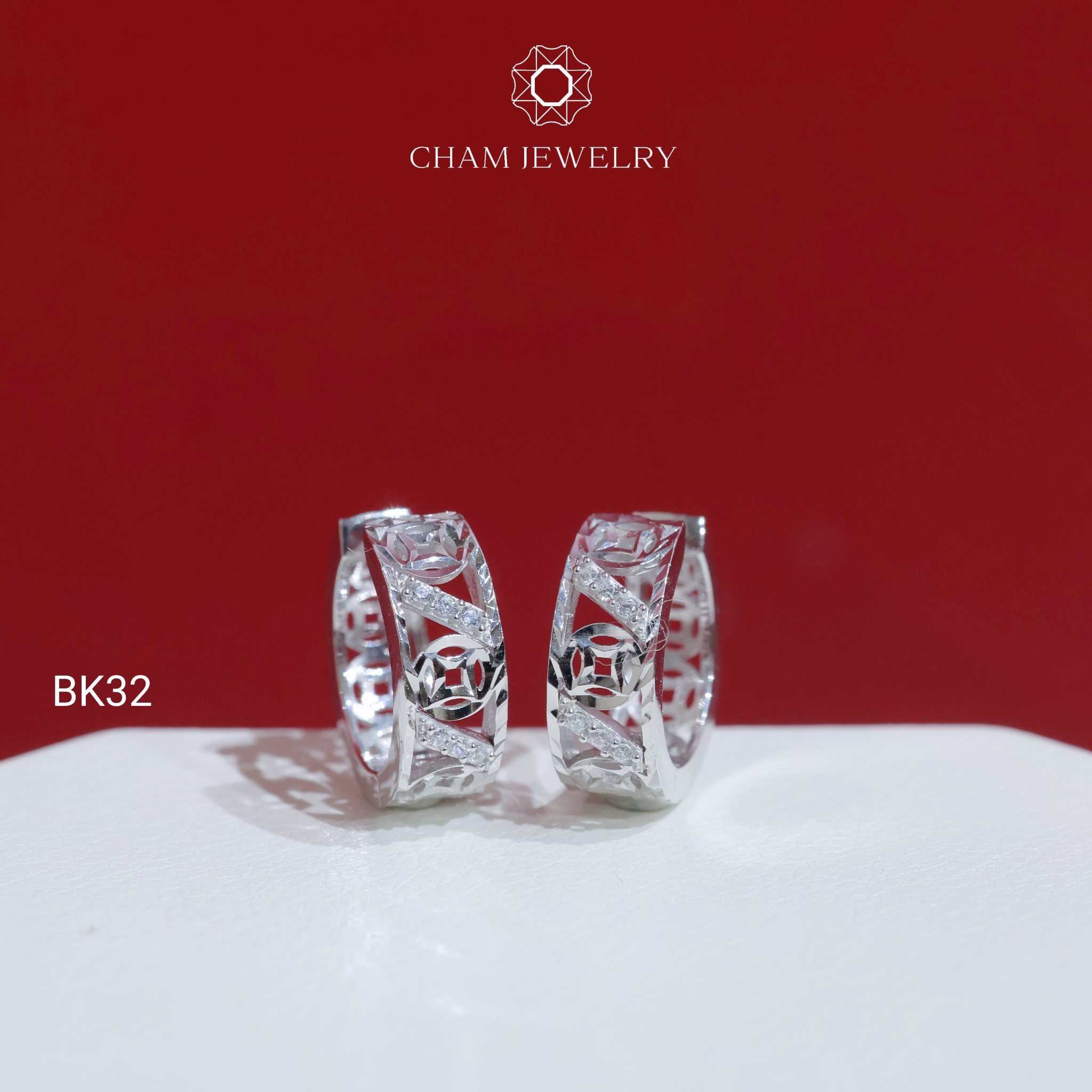 Hoa Tai BK32 CHAM JEWELRY , Hoa Tai Khoen Kim Tiền Bản 5.0mm (Barcode TBK349).