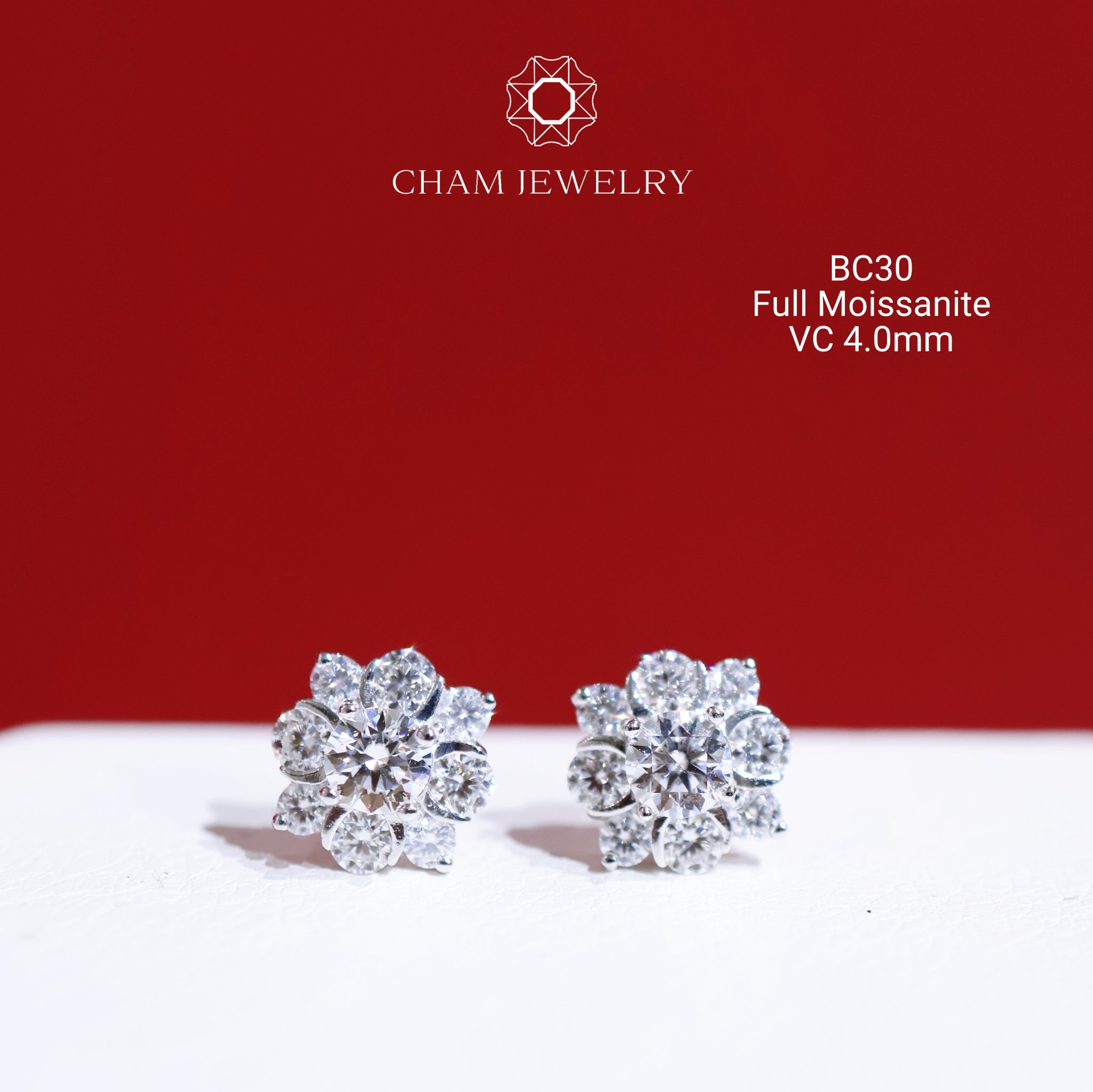 Hoa Tai CHAM JEWELRY BC30, Full Moissanite Chủ 4.0mm (Barcode CAD1VM47)
