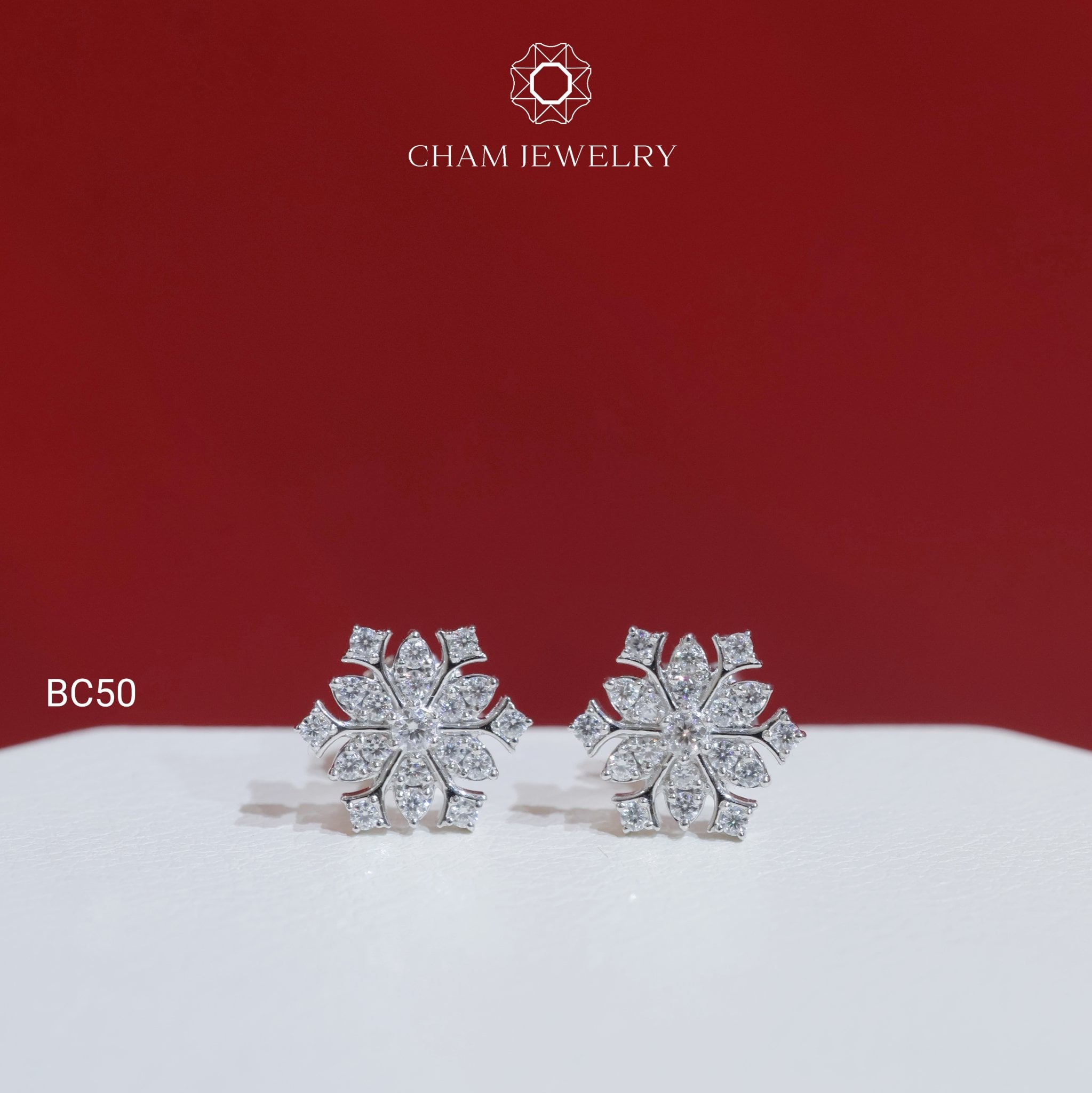 Hoa Tai CHAM JEWELRY BC50, Full Moissanite (Barcode OHB02)