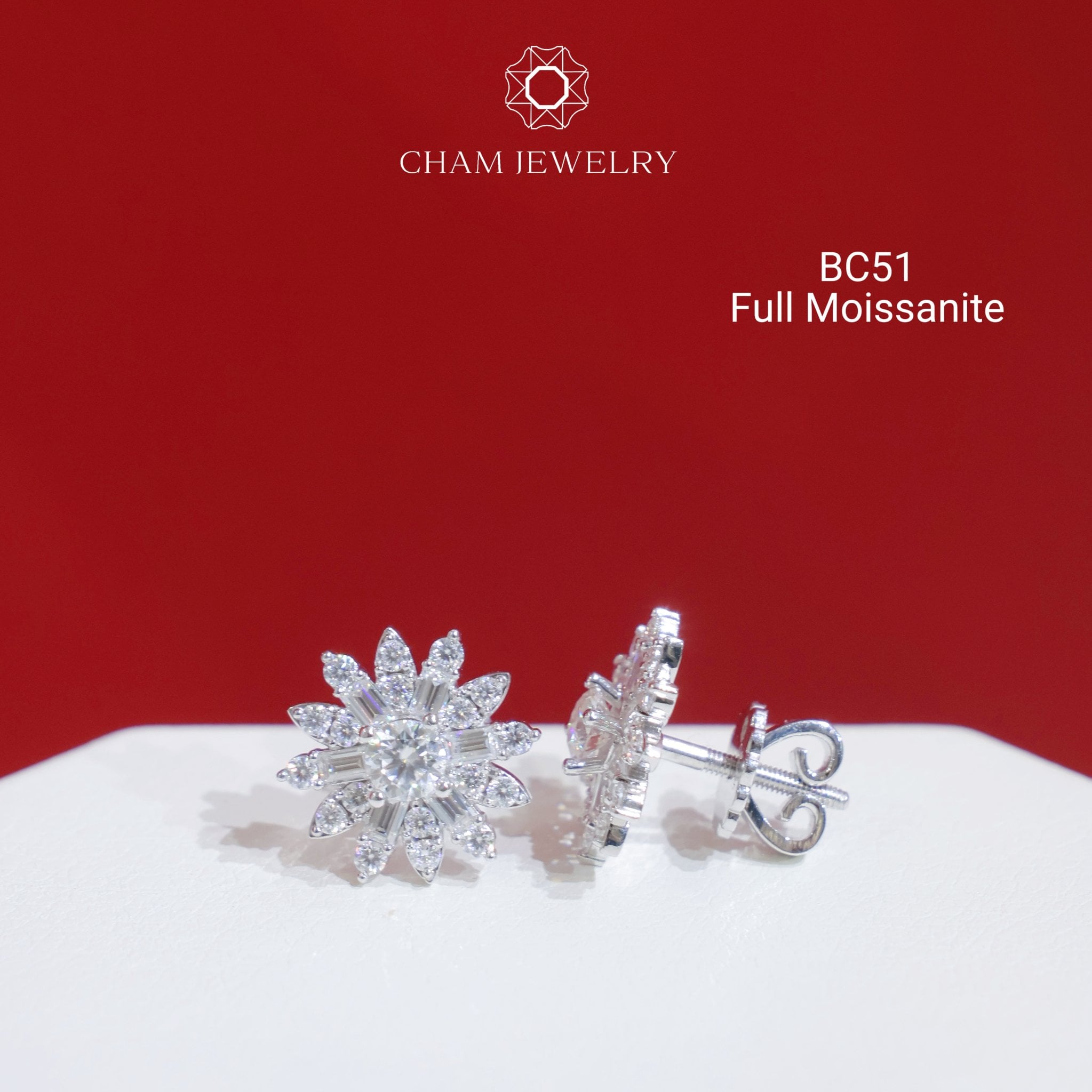 Hoa Tai CHAM JEWELRY BC51, Full Moissanite Hoa Tia, Chủ 3.5mm (Barcode OHB01)