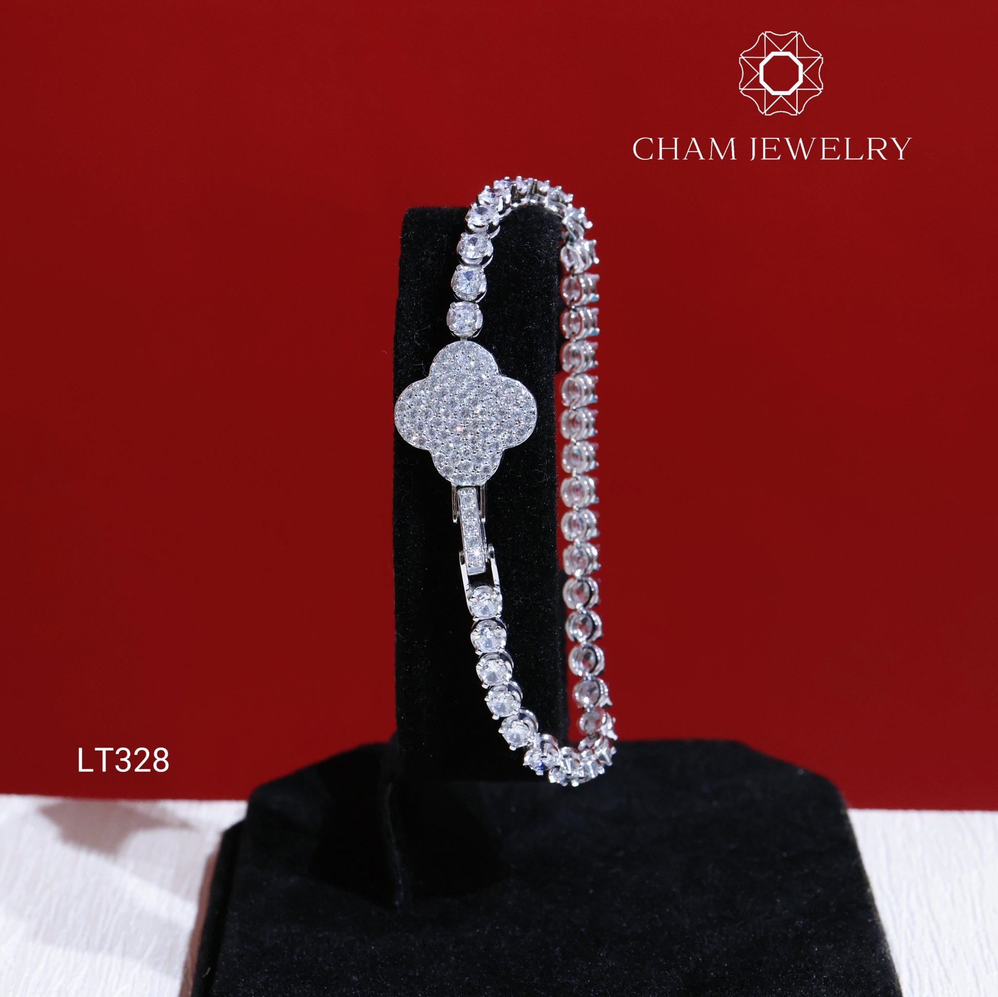 Lắc Tay LT328 CHAM JEWELRY, Lắc Cỏ 4 Lá Full Đá 3.0mm (Barcode TLT1326).