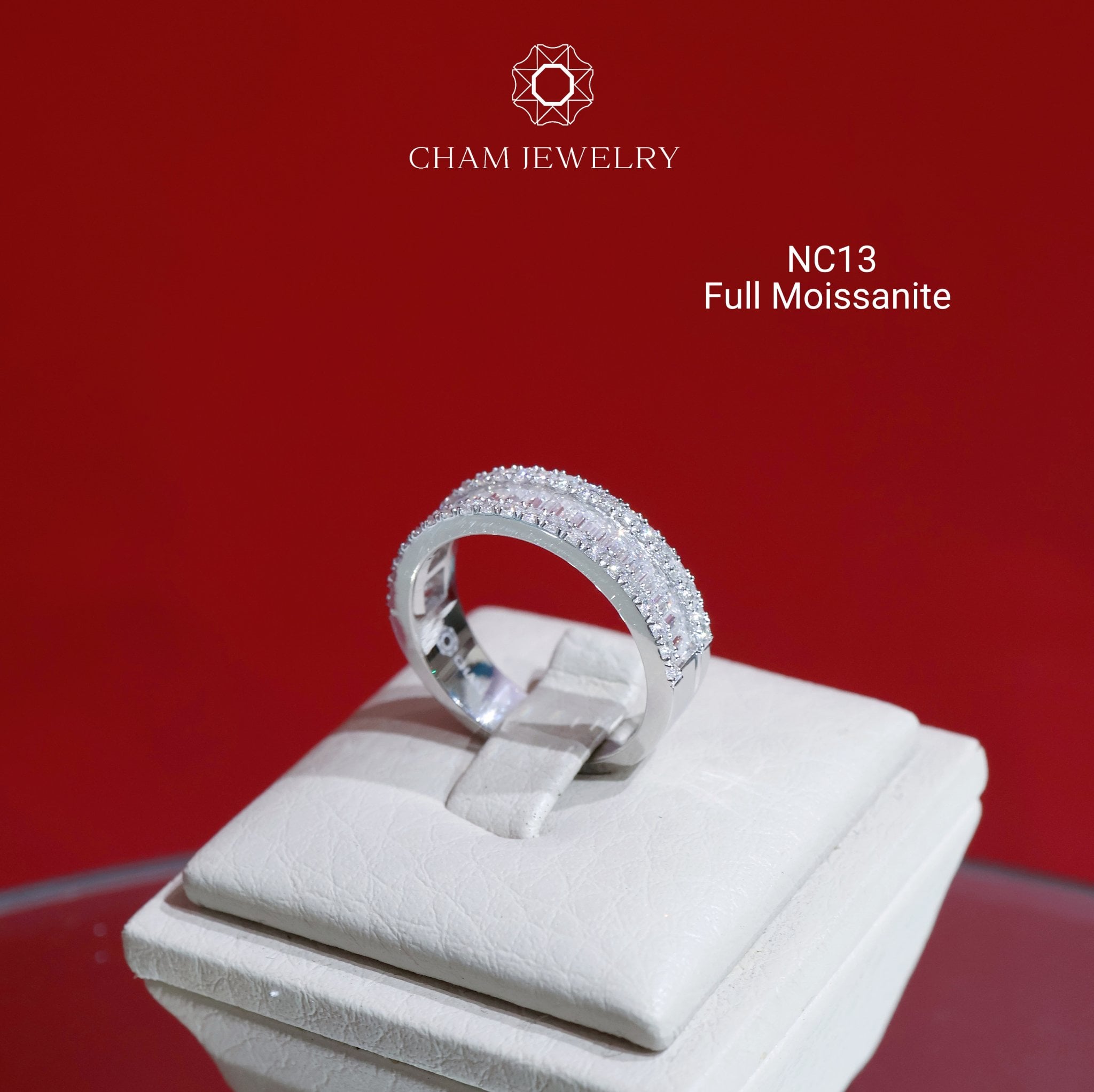 Nhẫn NC13 CHAM JEWELRY, Full Moissanite Bản 6.0mm (Barcode OHN01)