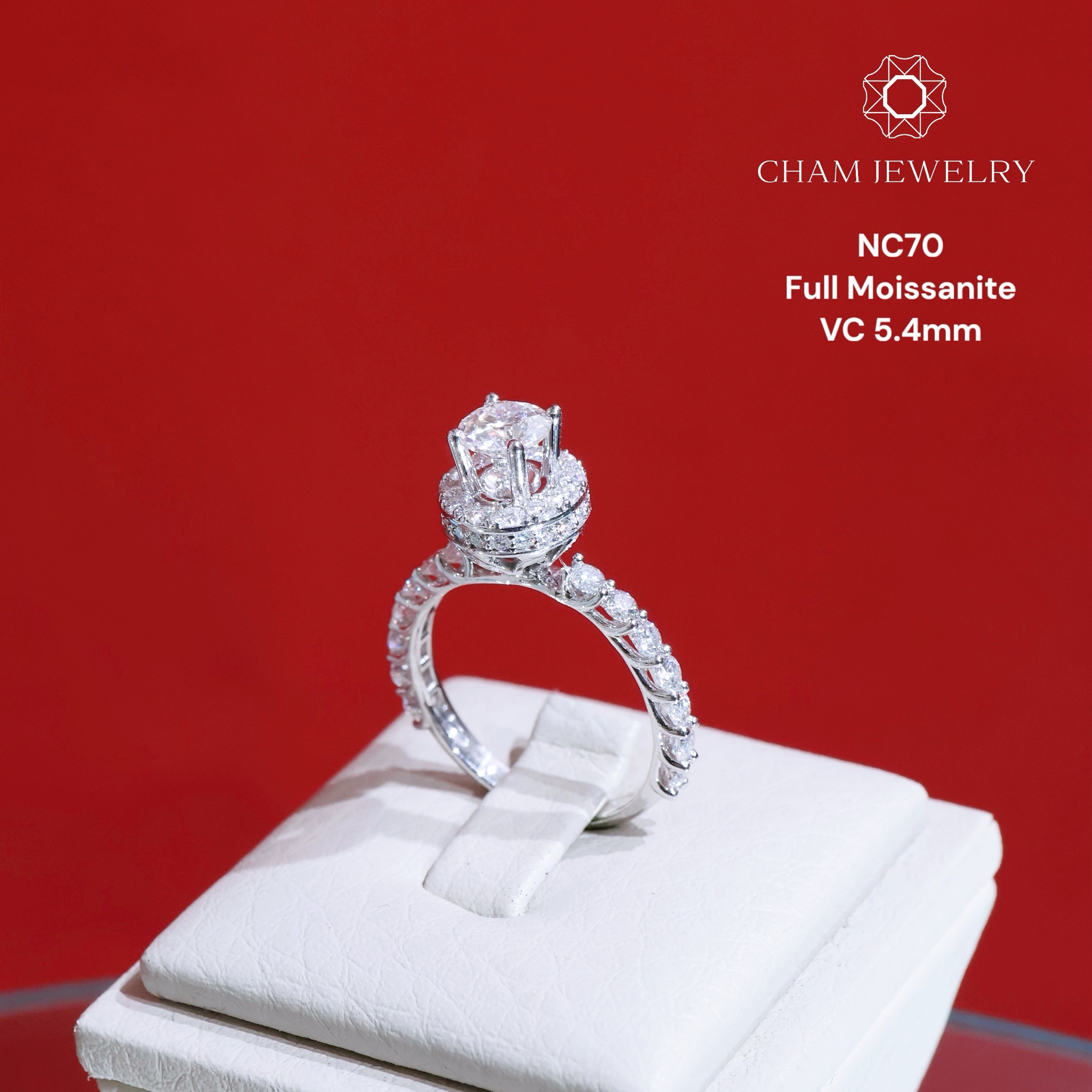 Nhẫn NC70 CHAM JEWELRY, Full Kim Cương Moissanite, Chủ 5.4mm (Barcode ONNU75)