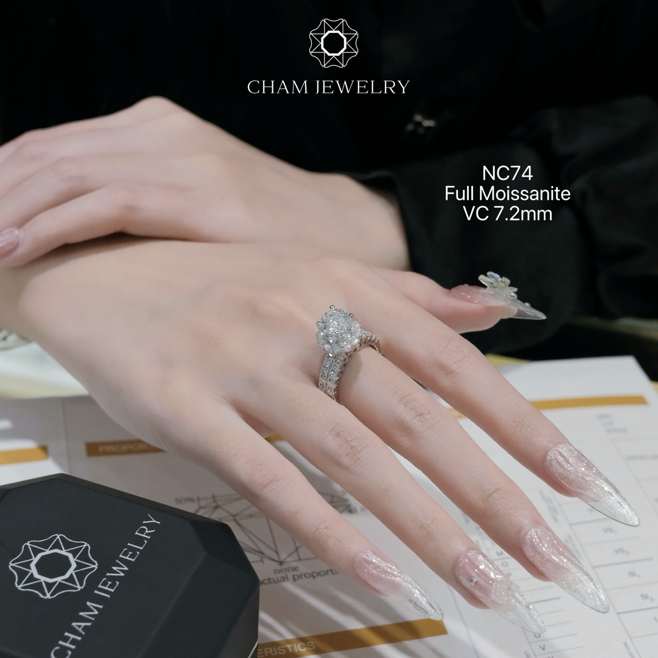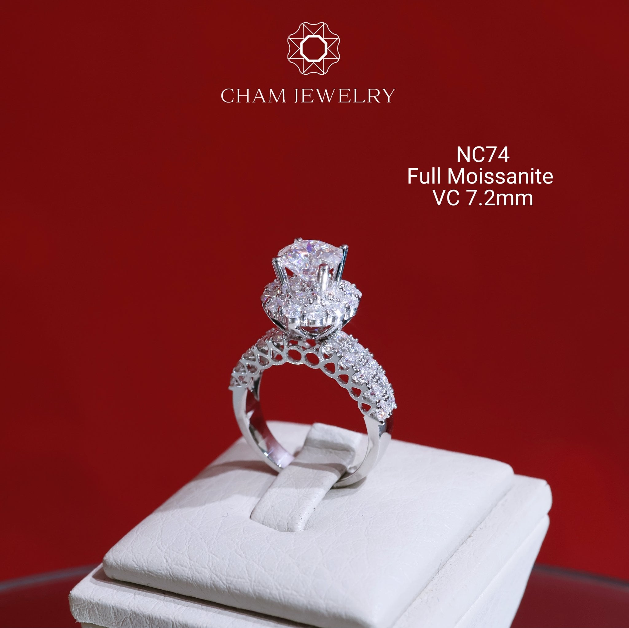 Nhẫn NC74 CHAM JEWELRY, Full Moissanite, Chủ 7.2mm (Barcode ONNU106)